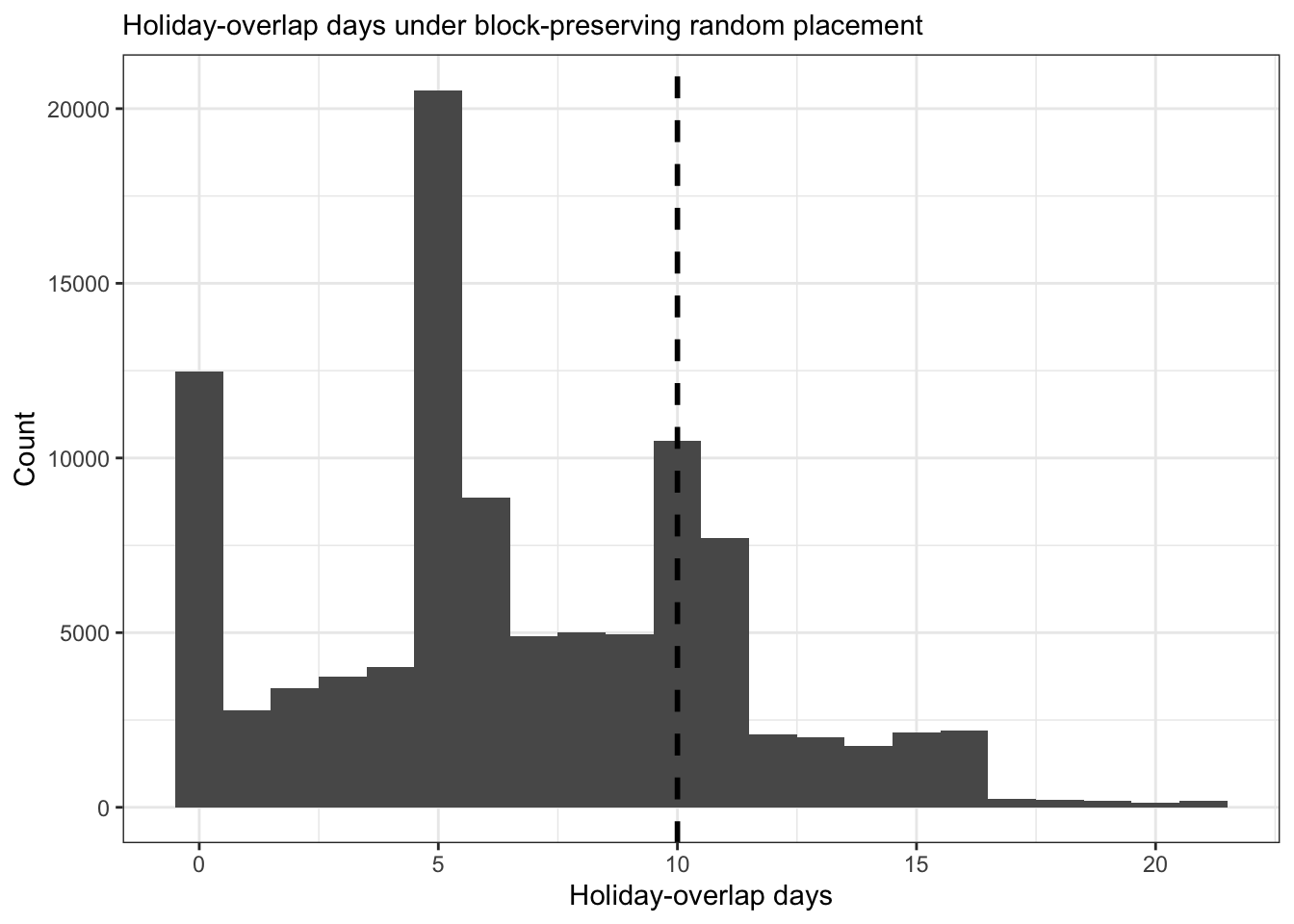 In the more appropriate block-preserving permutation analyses, the full-period overlap only appeared slightly higher than expected by chance, and the recent-versus-earlier comparison suggested that the more recent strike period may have been more holiday-aligned than the earlier one without providing strong proof that this difference was unusual under random block placement.