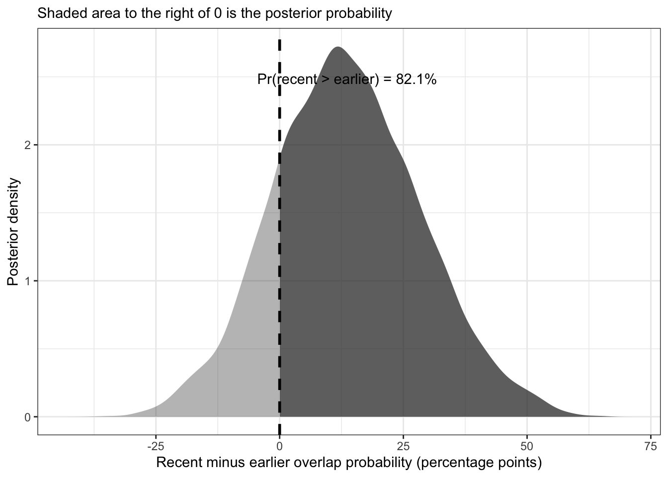 x = "Recent minus earlier overlap probability (percentage points)",